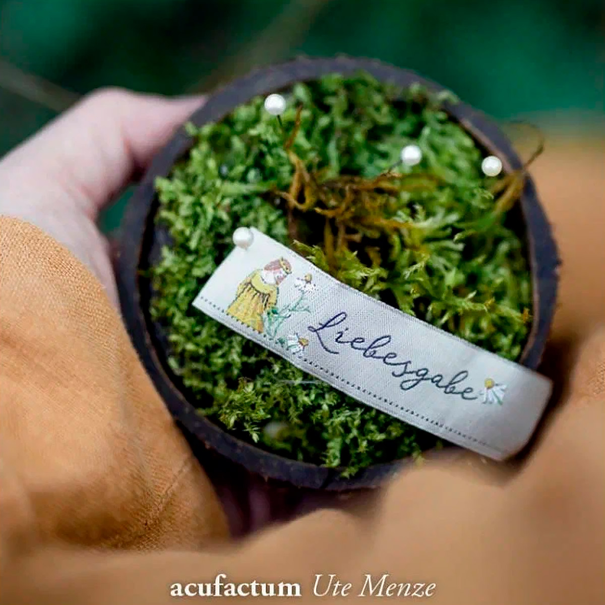 Этикетка тканая "Liebesgabe" 20*70мм, 100% полиэстер, Acufactum Ute Menze, 35284