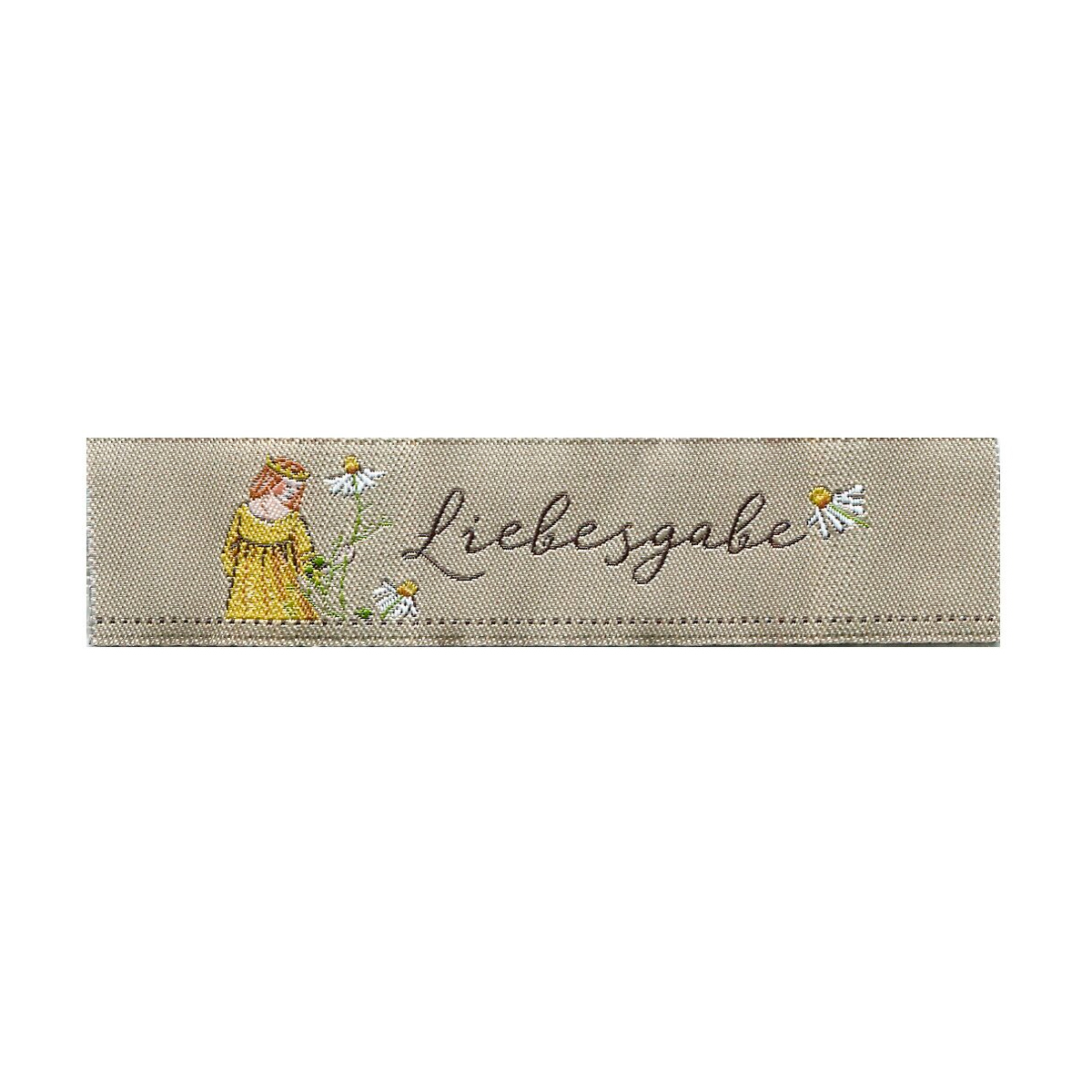 Этикетка тканая "Liebesgabe" /Подарок любви/ 20*70мм, 100% полиэстер