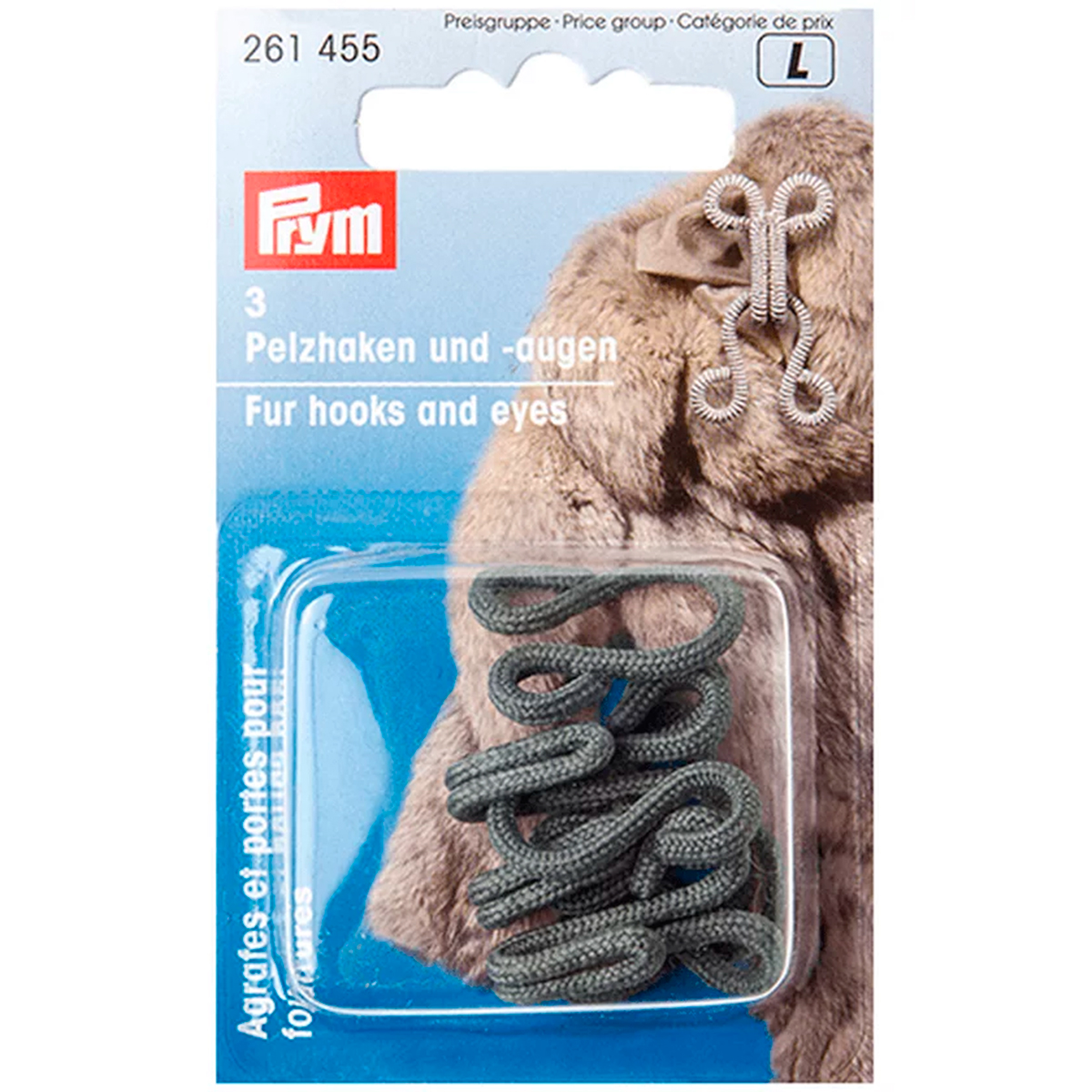 Крючки и петли д/меховых изделий обтянутые нитью, железо, с защитой от коррозии, серый, 3шт в блистере, Прим