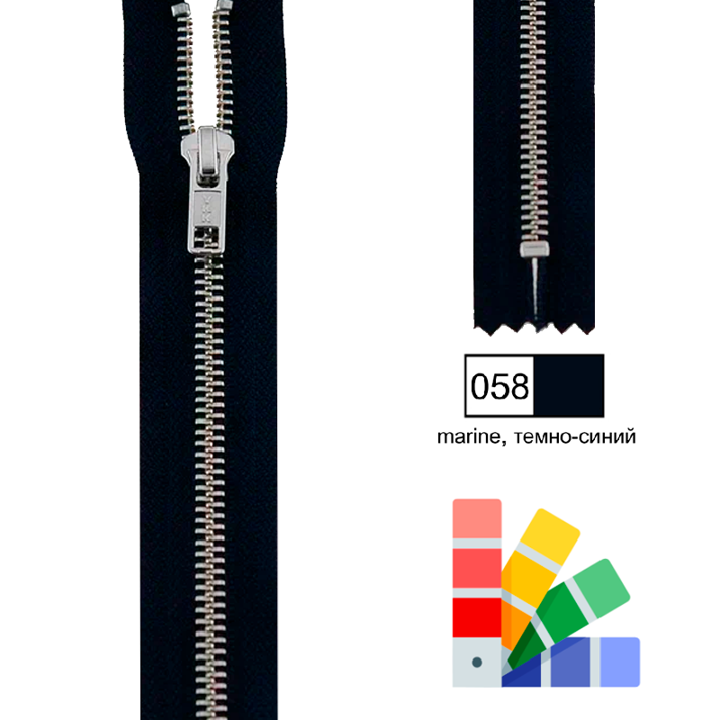 Застежка-молния YKK, неразъемная, рейка 6мм (ширина ленты 3см), длина 18см, металл, темно-синий