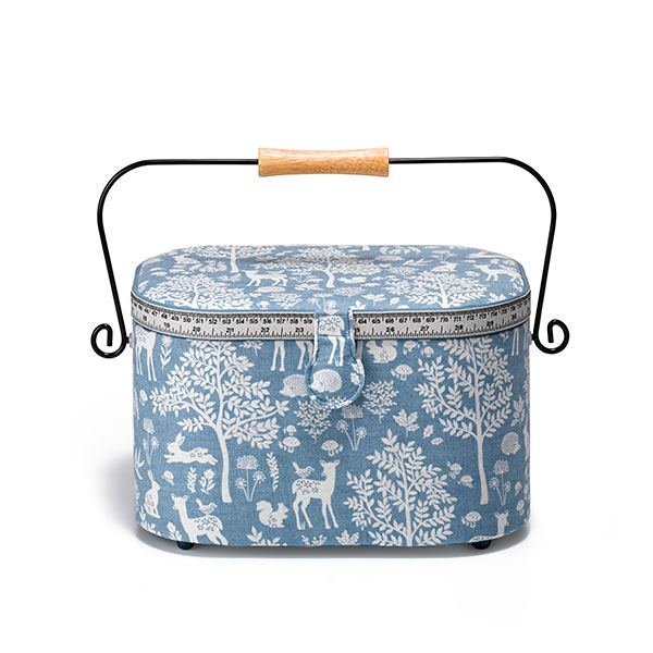 Шкатулка для рукоделия "Woodland" /Лесной/ 30*20,5*19см, хлопок/синтетическое волокно/металл, кремовый/серо-синий