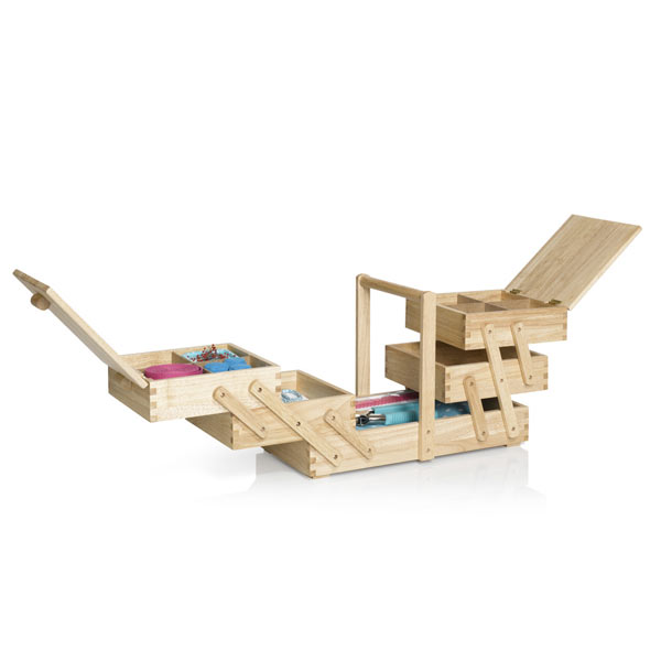 Шкатулка трехъярусная 45*28*23см, каучуковое дерево, натуральный светлый цвет дерева, для шитья, вышивания и хранения мелочей, прекрасно вписывается в интерьер.Без наполнения