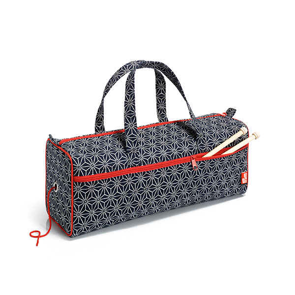 Сумка для рукоделия с дизайном в традициях японской культуры, имеет место для нескольких мотков шерсти или начатого вязания. Большой внутренний карман предназначен для хранения длинных прямых спиц, а два малых кармана для коротких спиц и других мелких принадлежностей. Сумка имеет сбоку отверстие, через которую отматывается нить при вязании. Вв внешнем кармане можно хранить дополнительные принадлежности, такие, как ножницы, шаблоны, линейки, схемы. Вместительная сумка для рукоделия в горошек будет незаменимым спутником в поездке.