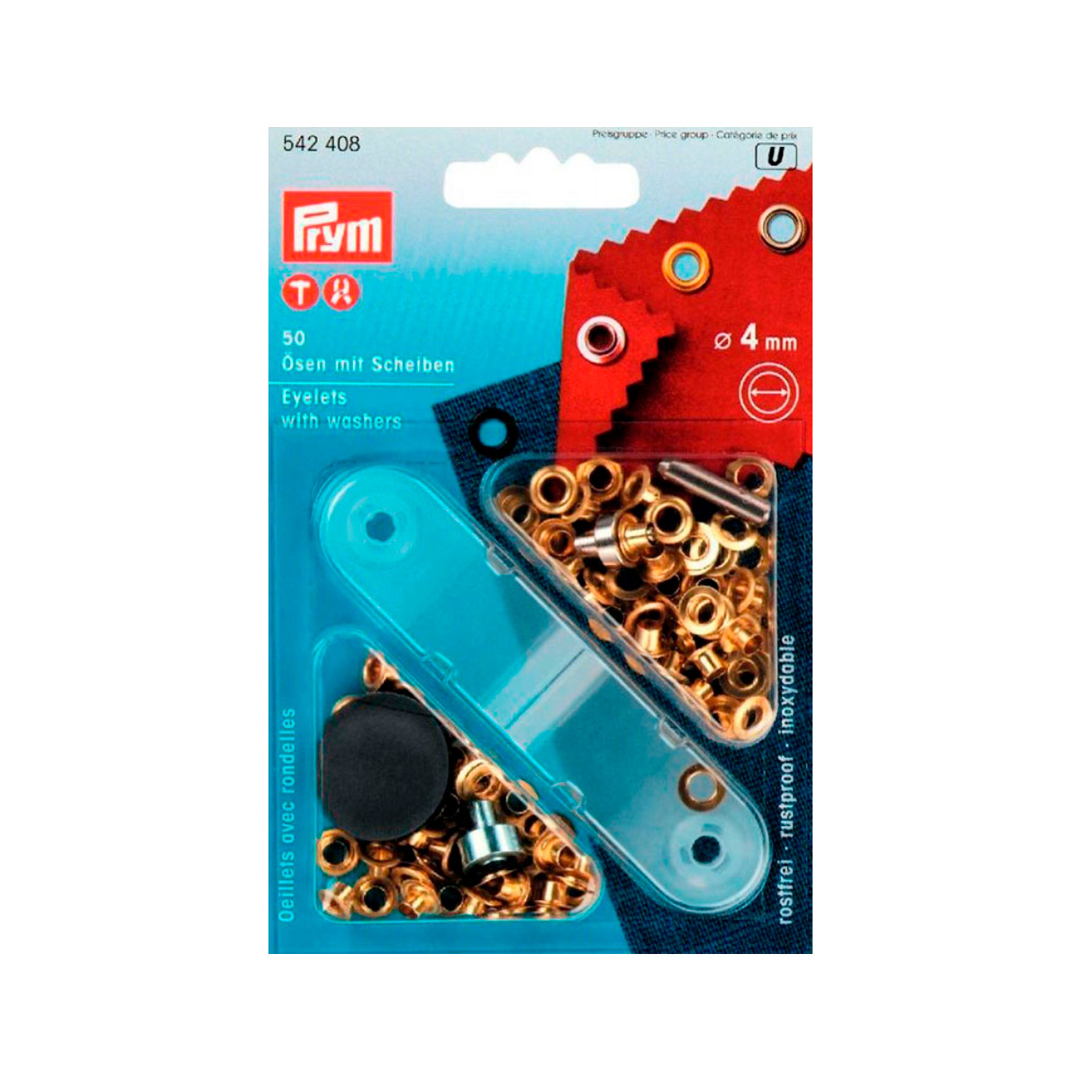 Люверсы, внутренний диаметр 4мм, латунь, золотистый, 50шт в упаковке, Prym, 542408