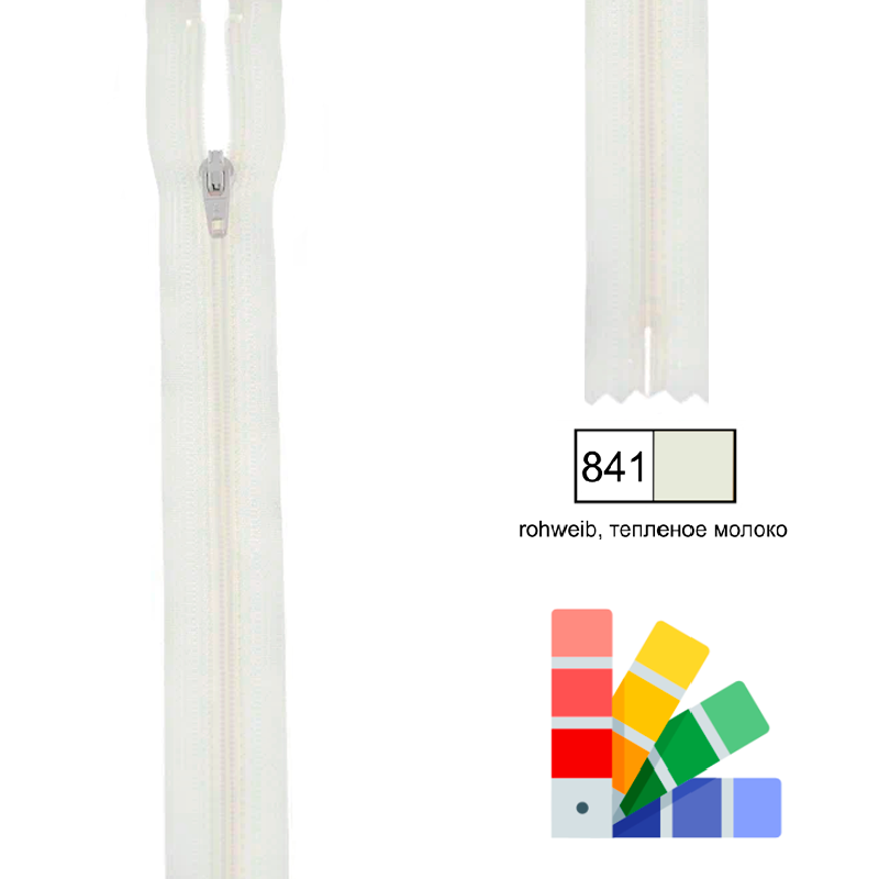 Застежка-молния YKK, спиральная, неразъемная, рейка 4мм (ширина ленты 2,5см), длина 22см, пластик, топленое молоко