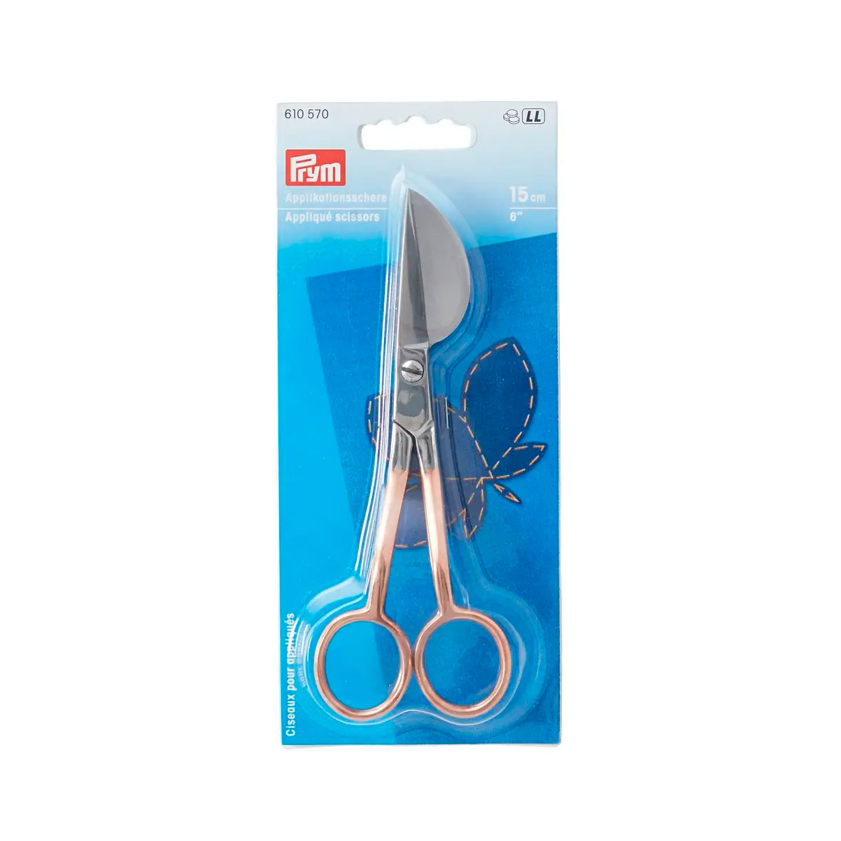 Особый изгиб полотна и рукоятки предотвращает повреждение ткани или аппликации, в современном цветовом решении.