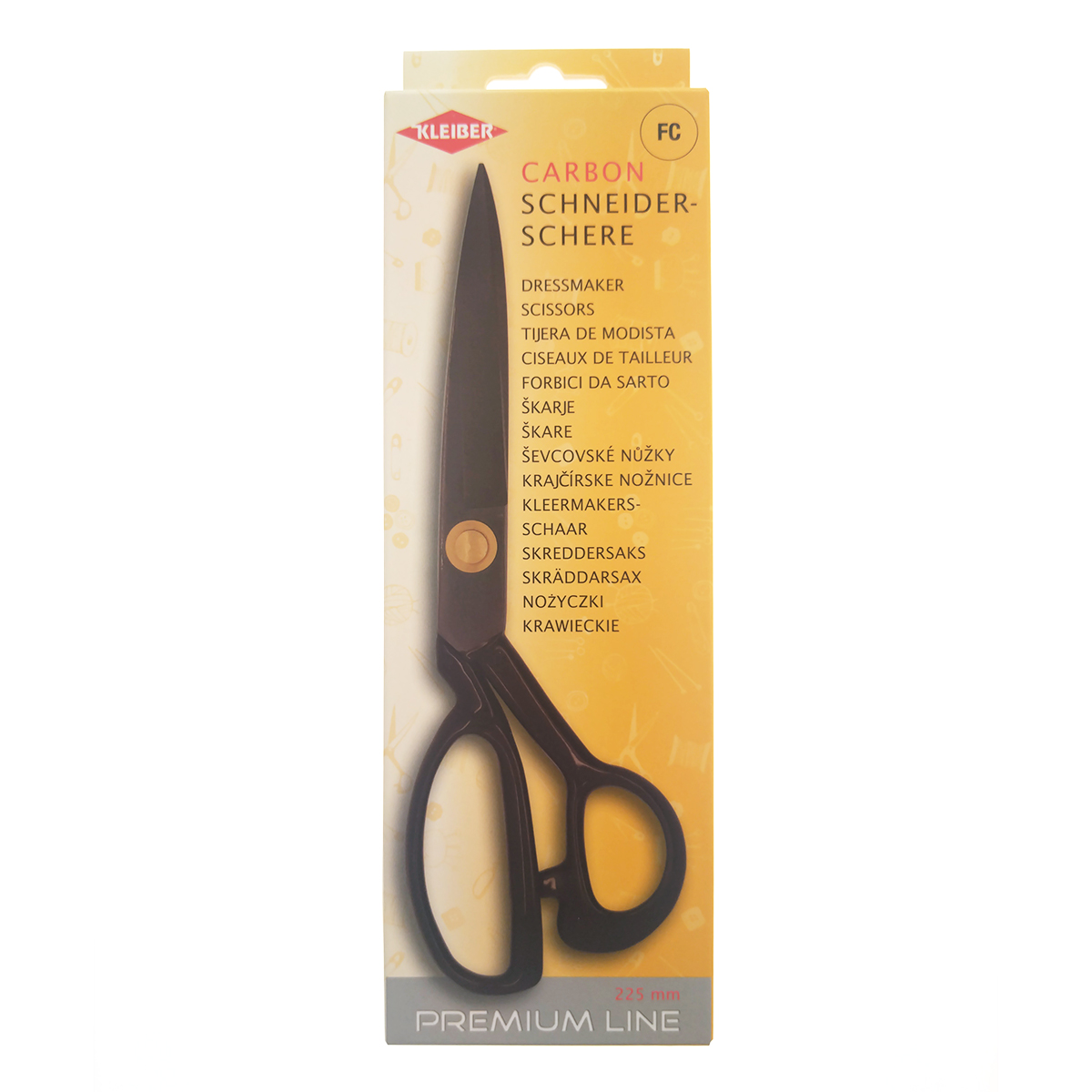Ножницы портновские "Premium Line Carbon", длина 22,5см, углеродистая сталь, черный, Kleiber, 923-10