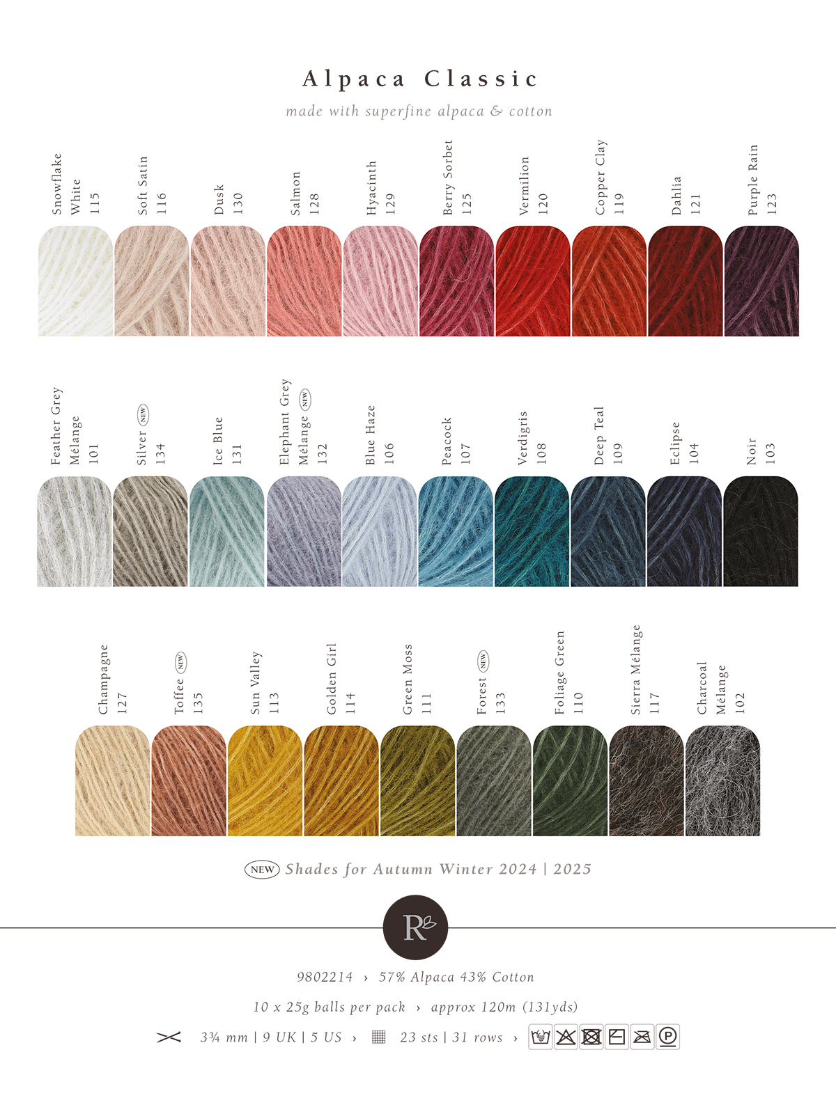 Rowan-британский премиальный бренд пряжи высокого качества с натуральными составами. Alpaca Classic — идеальный выбор для тех, кто предпочитает натуральные материалы и ценит комфорт. Изделия из этой пряжи служат долгие годы. Тонкая и воздушная пряжа с альпакой в хлопковом шнурке отлично подходит для создания джемперов и легких шарфов. Она великолепно смотрится в ажурных узорах, лицевой глади и аранах. Нежная хлопковая сетка и роскошные волокна альпаки создают легкую пряжу с эффектной текстурой. Несмотря на свою невесомость, она сохраняет тепло благодаря высокому содержанию альпаки.Уход: Ручная стирка в воде до 30°C, сушка в горизонтальном положении. Перед началом проекта обязательно свяжите и постирайте образец. Для размера М понадобится 400-500 грам пряжи. Рекомендуемые спицы: 3,75 мм