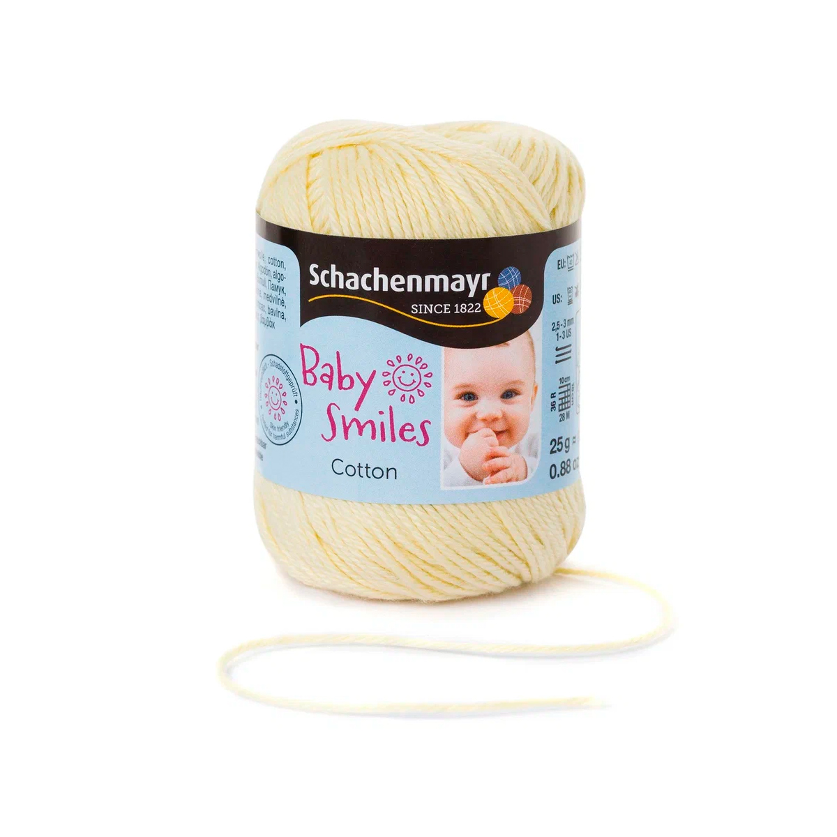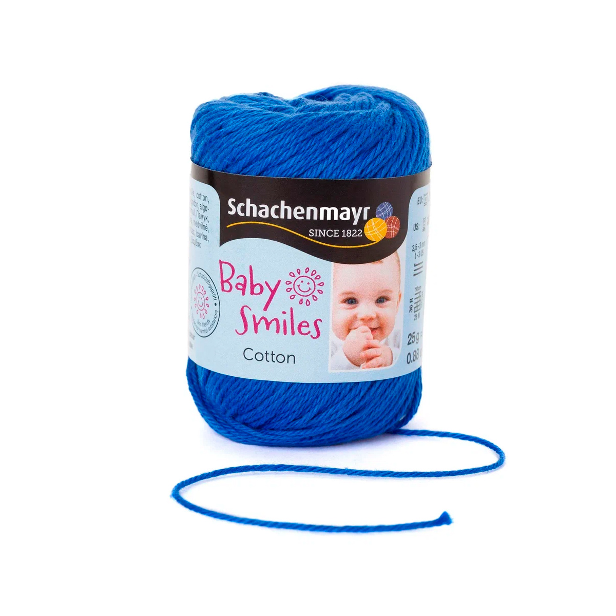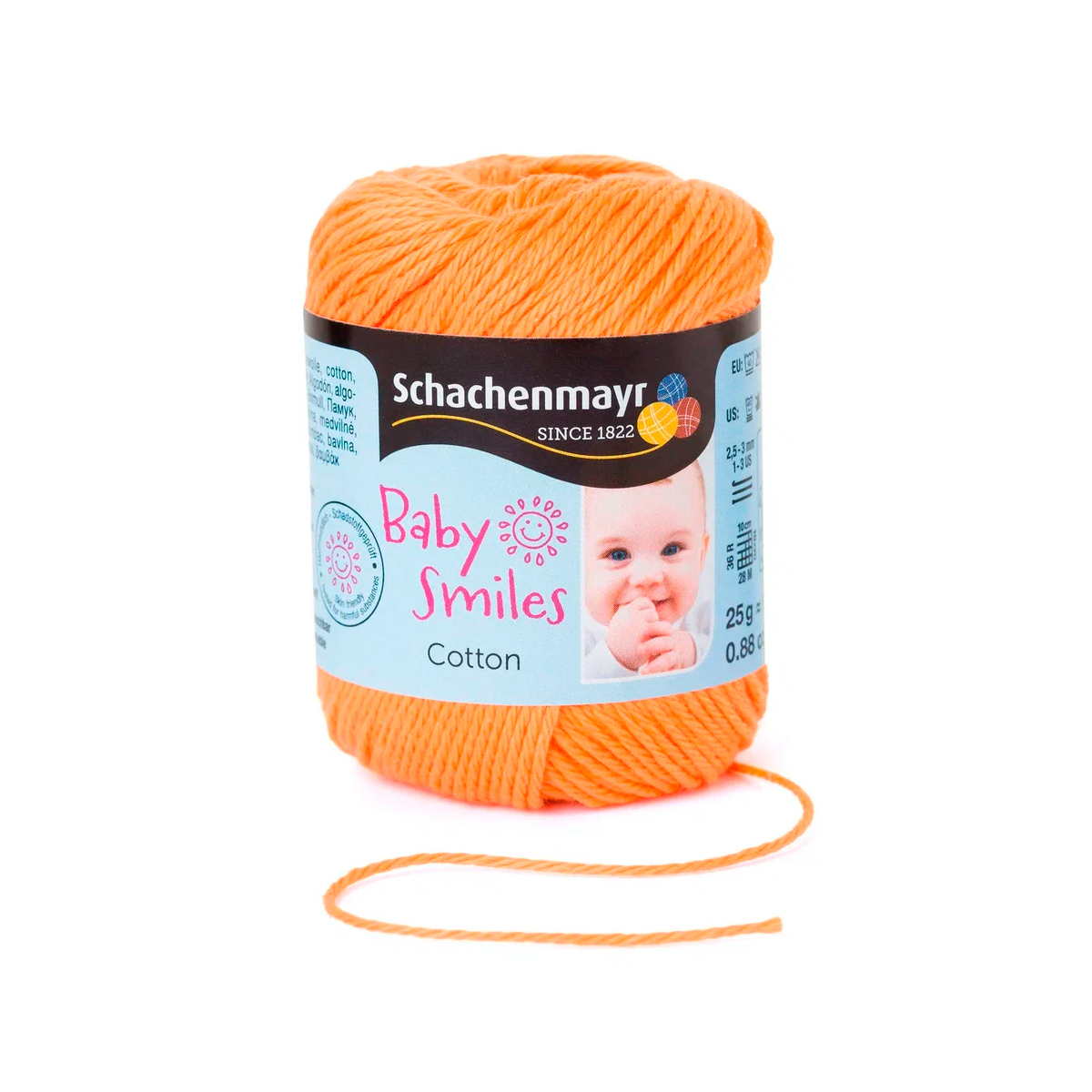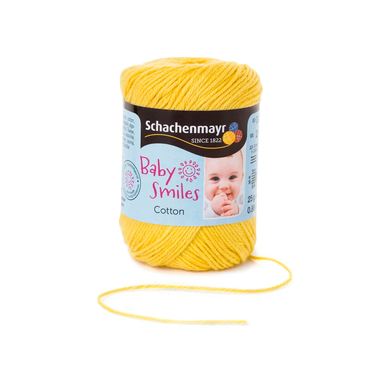 Baby Smiles Cotton (Котон) - высококачественная, легкая в уходе хлопчатобумажная пряжа в красивых ярких цветах. Длинные волокна египетского хлопка делают ее очень прочной, мягкой и приятной на ощупь. Стоимость объясняется использованием натуральных красителей для окрашивания нитей, именно поэтому ребенок может смело брать в рот и вещи и игрушки связанные из этой нити.