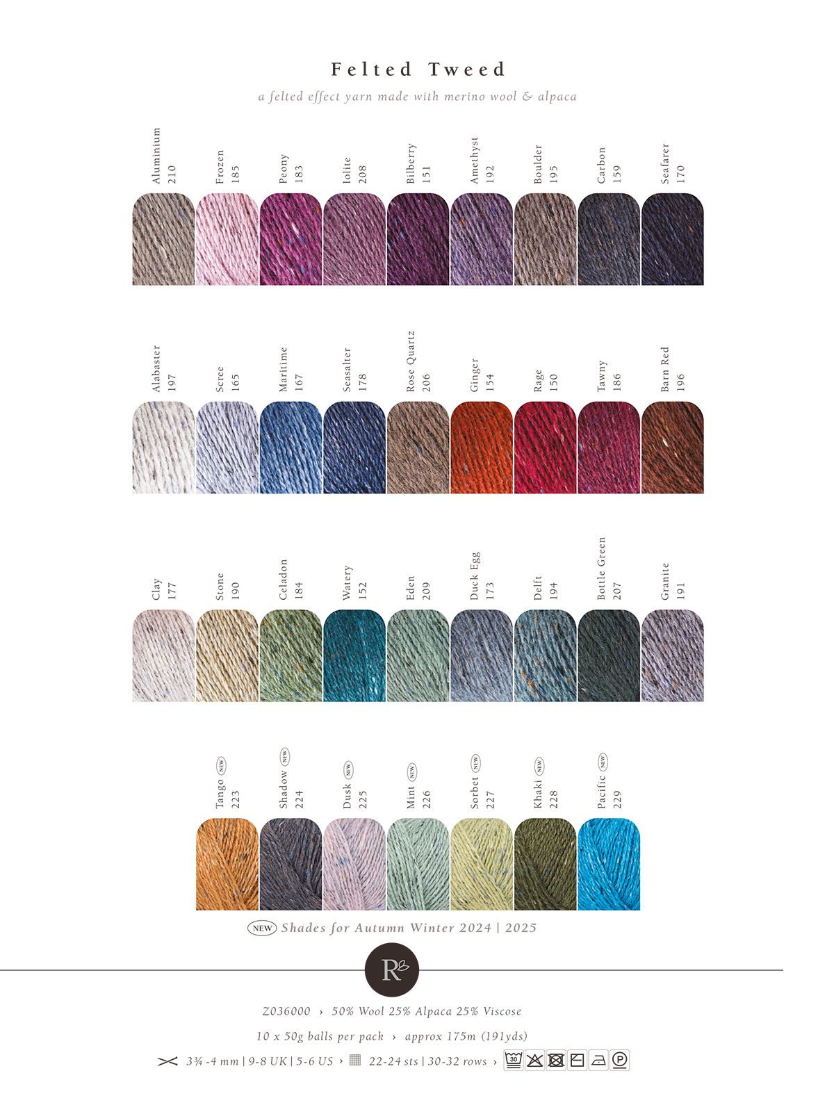 Rowan-британский премиальный бренд пряжи высокого качества с натуральными составами. Felted Tweed-пряжа для ценителей элегантности,отличается уникальной текстурой и благородным внешним видом. Пряжа средней толщины состоит из мериносовой шерсти,альпака и вискозы,её можно использовать для создания изделий,которые прослужат десятилетия. Благодаря твидовому эффекту,Felted Tweed идеально подходит для вязания жаккардовых узоров или полос. Природные оттенки делают её любимой среди дизайнеров. Из пряжи вяжут жакеты и кардиганы в стиле Шанель и Лапопейсы. Изделия из Felted Tweed держат форму,не колются. Почему Felted Tweed?Эффект ручной работы с благородной неоднородностью цвета,устойчивость к катышкам благодаря вискозе,лёгкий уход. Деликатная стирка при температуре до 30 C. Пряжа предварительно подваляна,что придаёт изделиям лёгкий «войлочный» эффект,усиливая твидовую текстуру. Перед началом проекта обязательно свяжите и постирайте образец. Для изделия размера M потребуется 300–350 грамм пряжи. Спицы №3,5-4 мм.