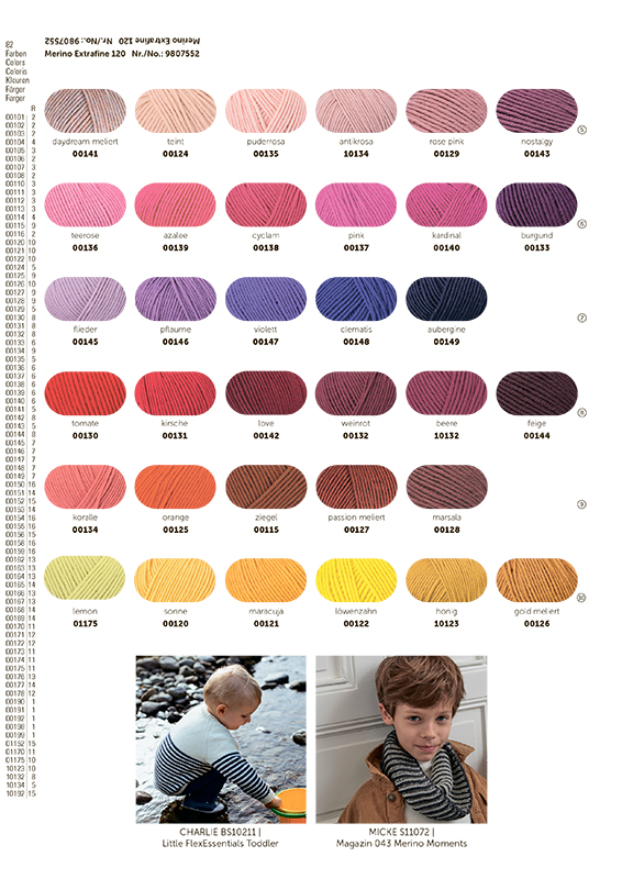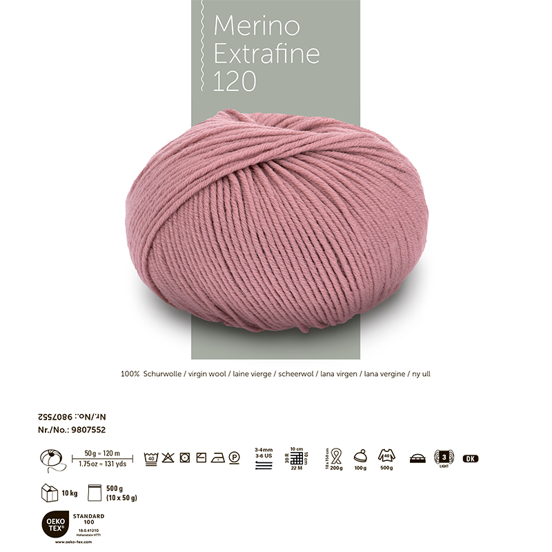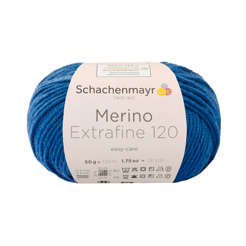 MERINO EXTRAFINE 120 — это пряжа от немецкого бренда Schachenmayr, известного своей высококачественной пряжей для вязания и рукоделия. Merino Extrafine 120— это высочайшее качество и мягкость, пряжа прекрасно держит форму благодаря скрутке из множества тонких нитей «милифилли», идеально подходит как для ажурных так и классических изделий. Она состоит из 100% тонкой мериносовой шерсти.Палитра Merino Extrafine 120 включает 80 оттенков, что позволяет создавать уникальные сочетания цветов в стиле интарсия. Millifilli — длинная и тонкая пряжа в линейке Schachenmayr Merino. Благодаря множеству отдельных нитей, она обеспечивает исключительную тонкость и мягкость. Из этой пряжи можно создать стильные кардиганы, изысканные шали и яркие проекты. Она не только красива, но и приятна на ощупь.Ещё один плюс: эту пряжу можно деликатно стирать до 40 °C и сушить в стиральной машине. Для изделия 46 размера потребуется 500 грамм пряжи, для шапочки — 150 грамм. Рекомендуемые спицы — №3-4 мм.