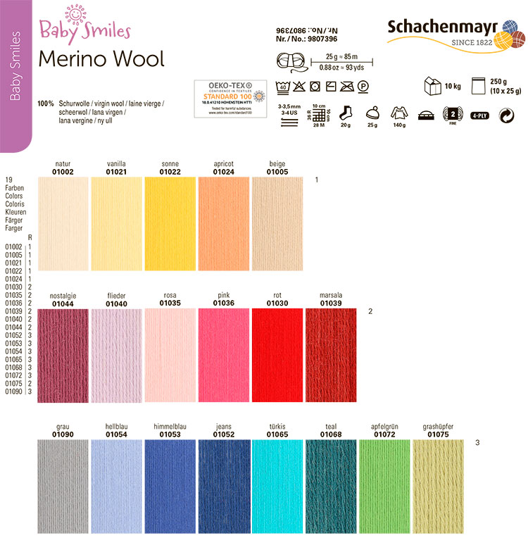 Merino Wool /Мерино Вул/ пряжа Schachenmayr Baby Smiles, 100% шерсть, 10*25г/85м