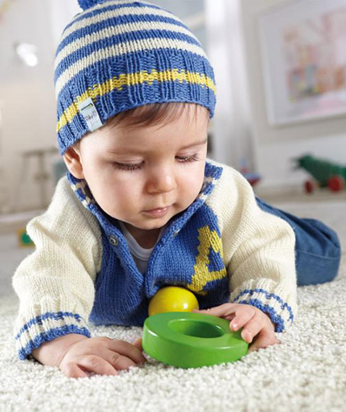 Легкая в уходе за изделиями, эта пряжа в 4 сложения, состоящая на 100% из мериносовой шерсти, согреет вашего малыша даже в самые холодные дни.