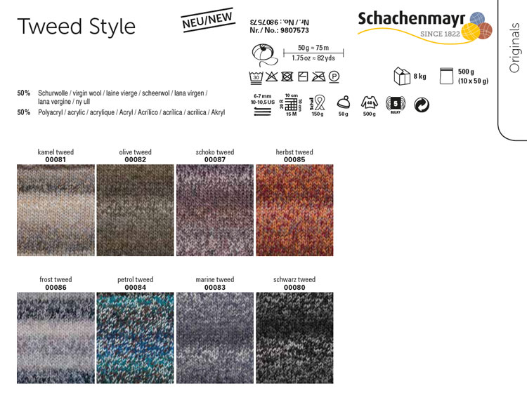 Tweed Style /Твид Стайл/ пряжа Schachenmayr Originals (50% шерсть, 50% полиакрил), 10*50г/75м