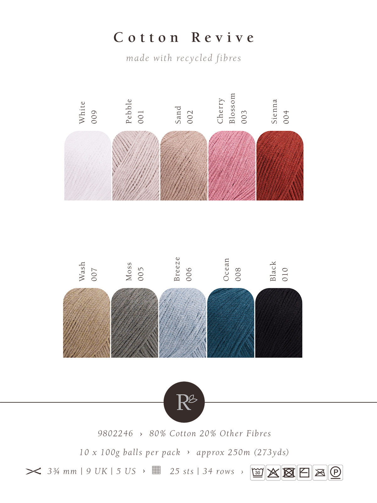 Rowan-британский премиальный бренд пряжи высокого качества с натуральными составами.Cotton Revive-инновационная пряжа из переработанного хлопка. Пряжа состоит на 100% из вторичных волокон, что помогает уменьшить количество текстильных отходов и снизить углеродный след. Cotton Revive отличается высоким качеством,она сохраняет структуру и эластичность. Рекомендуется деликатная стирка при температуре до 30°C и горизонтальная сушка.Перед началом проекта обязательно свяжите и постирайте образец. Для изделия размера M-L понадобится 350-500 грамм пряжи. Рекомендуемые спицы №3,25 мм.